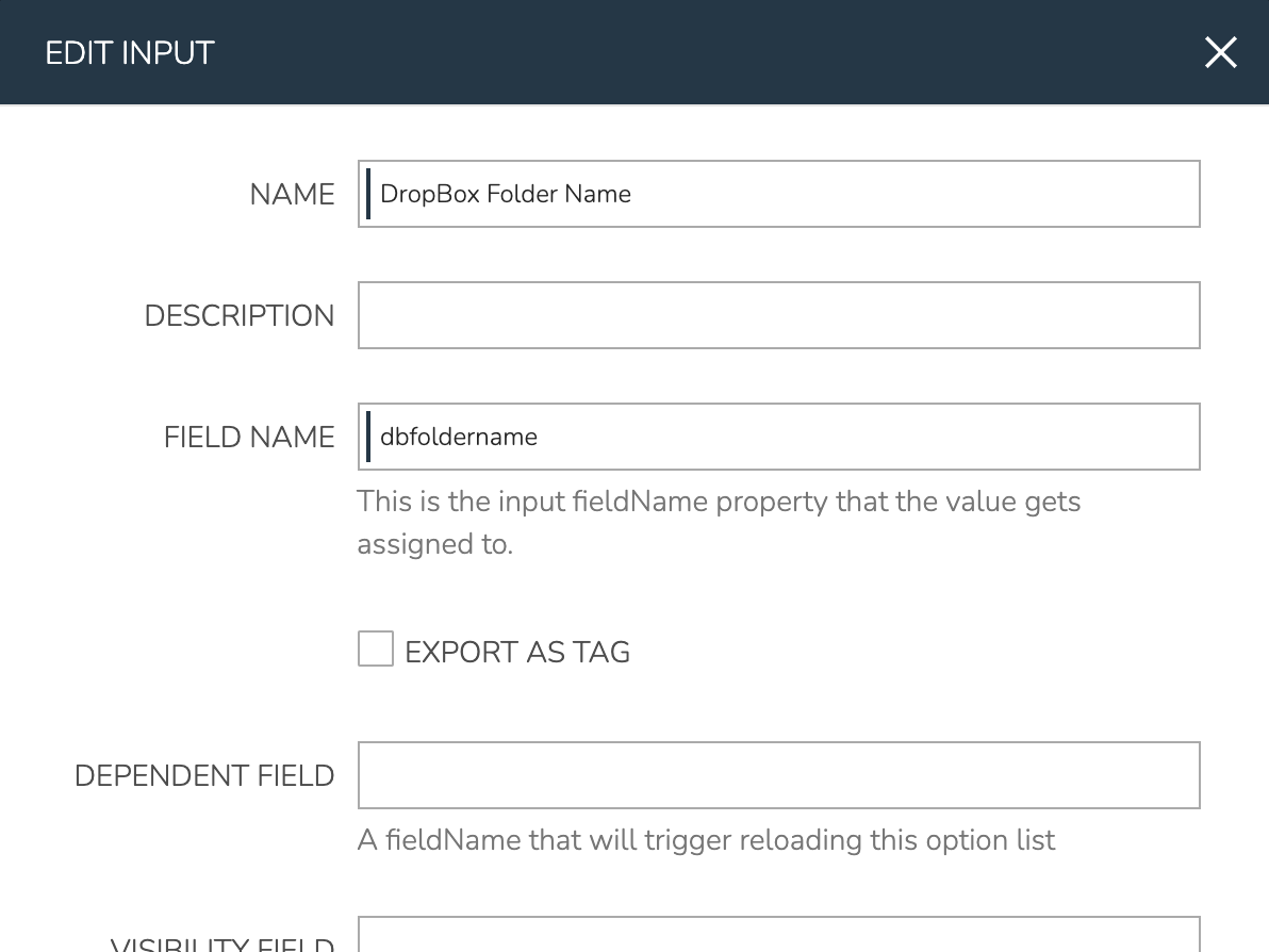 LABEL: DropBox Folder Name (The label the user sees next to the input field)